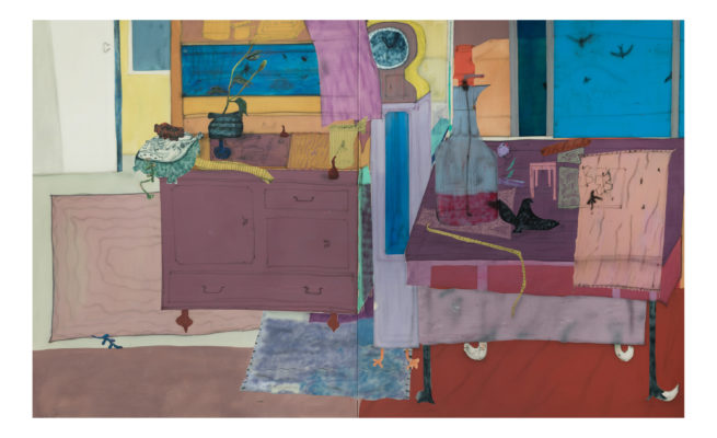 Buffet, 2019, Acrylic and ink on canvas, 140×145 cm