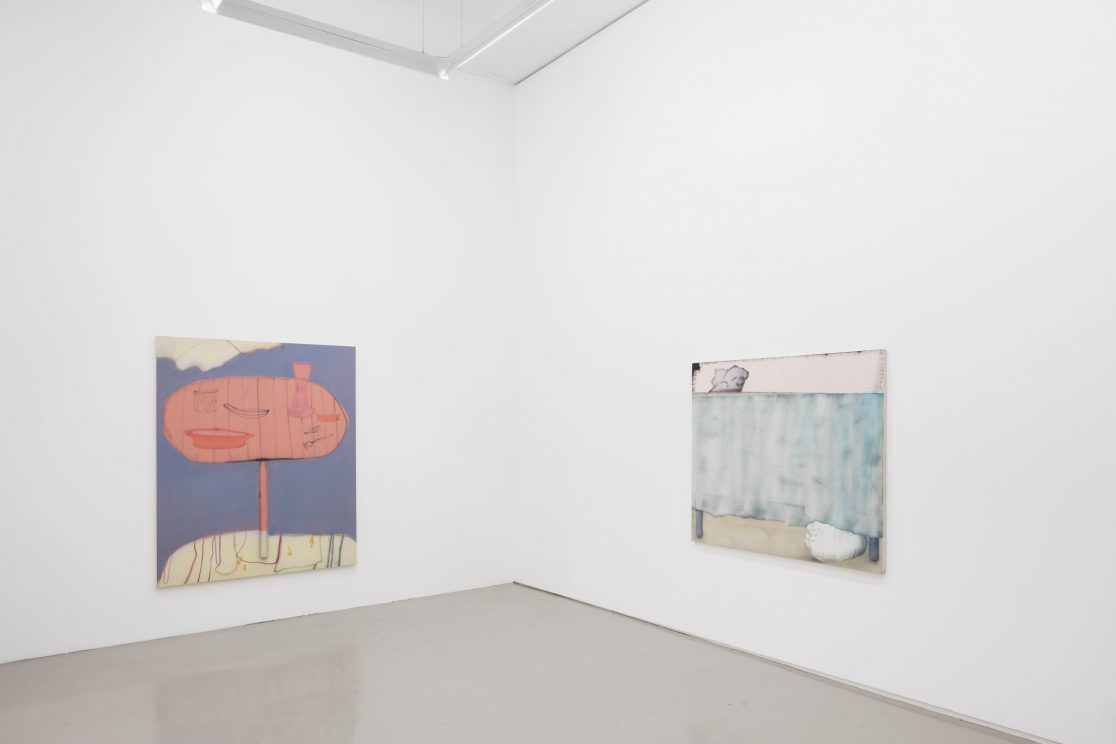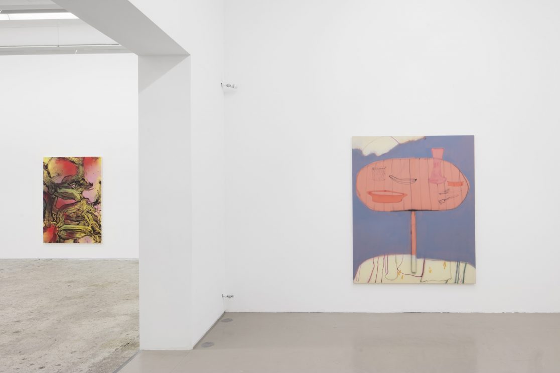 Afterparty, 2018, Acrylic, ink and synthetic laquer on canvas, 140×160 cm